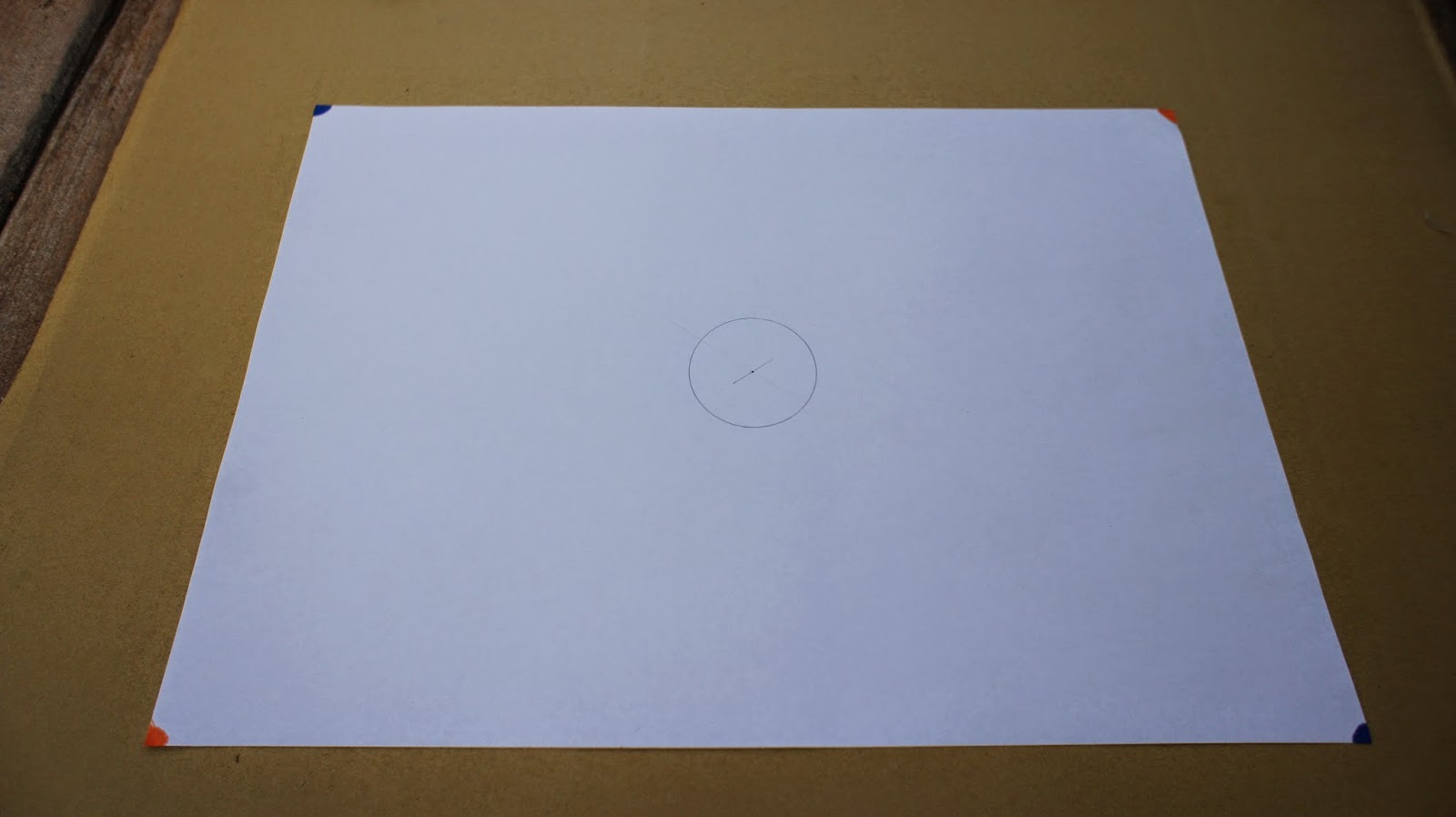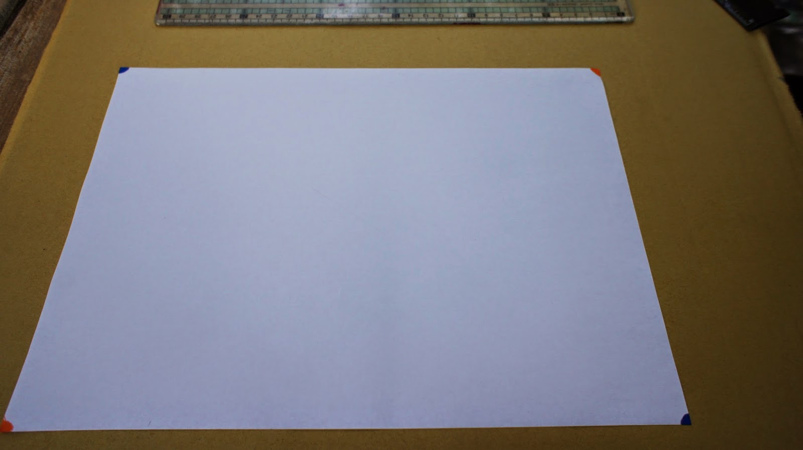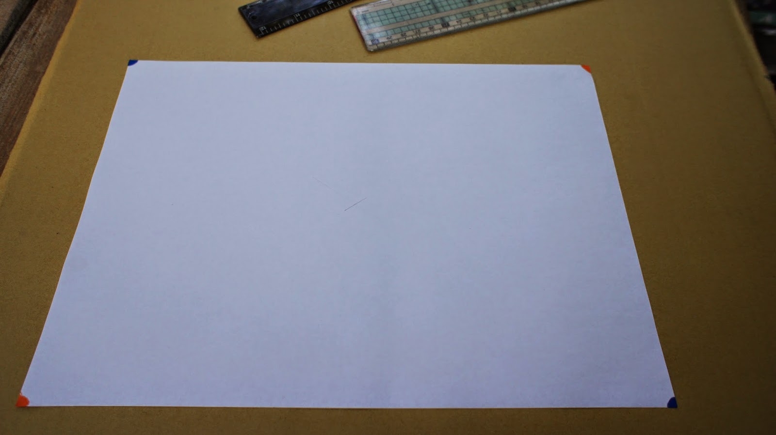 兩支直尺並攏,尺不夠長,可以1M尺,用意是找出圖紙的中心點,讓幾何圖騰在圖紙置中